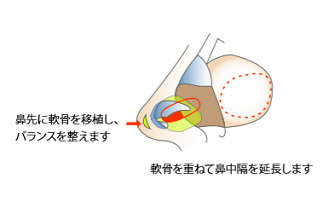鼻中隔延長は、鼻先の長さを延ばす手術です。